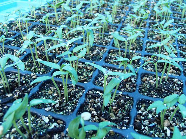 今までは発芽が悪くて苦労していたのですが、今年は保温をよくしたことで100%に近い発芽率です。