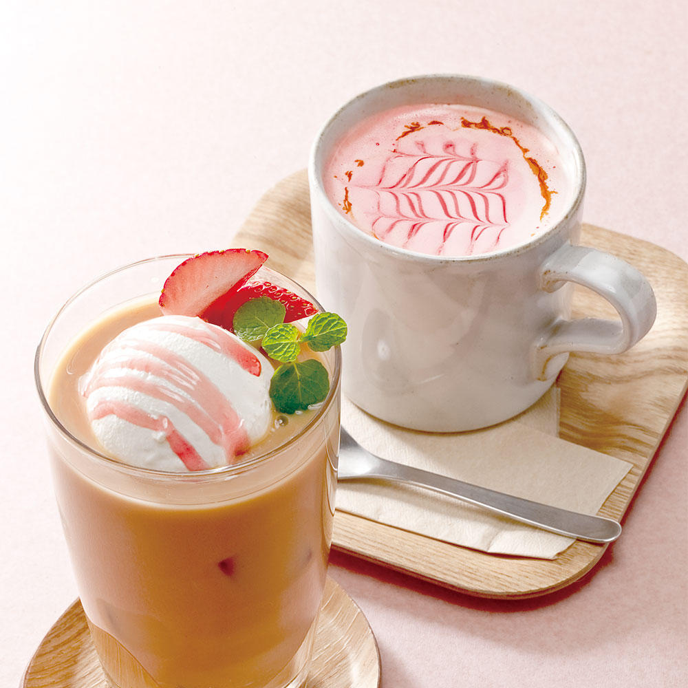 なんと隠し味に甘酒と自社農場産の紫蘇で作った紫蘇ジュースが入っています!ホット(奥)には紫蘇ホイップと紫蘇シロップを使ったラテアートが描かれていますが、ここでも自社農場産の紫蘇が大活躍しています。アイス(手前)は紫蘇シロップがかかったスパイスジェラートと季節のフルーツがのっています。どちらも春満開ですね✿なおこちらはドリンクセットとしてはお選び頂けないので予めご了承ください。