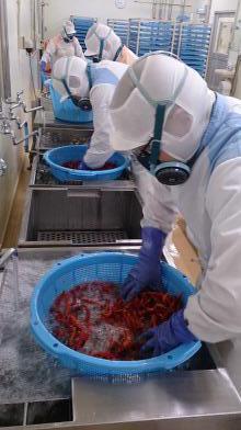 唐辛子の乾燥が終わり、さや取りも進んできているので、洗浄作業を随時行っています。