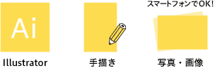 ※Illustratorデータがない場合、できるだけ大きくロゴマークが使用されているパンフレットや名刺等の印刷物をご用意ください。